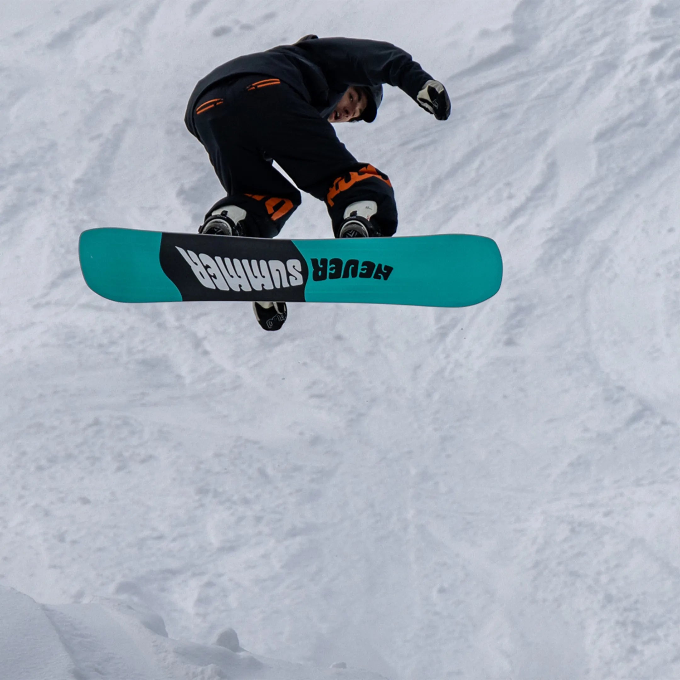 Jumps: The board can pop high and land softly, thanks to its camber zones under the feet and its low profile tip/tail. The board has enough stiffness to provide stability and support, but also enough flex to absorb impact and reduce rebound.